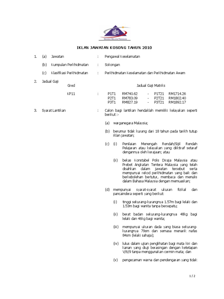 Related : Tugas Pengawal Keselamatan Kp11 : Jawatan kosong terkini yang diiklankan adalah seperti berikut:.