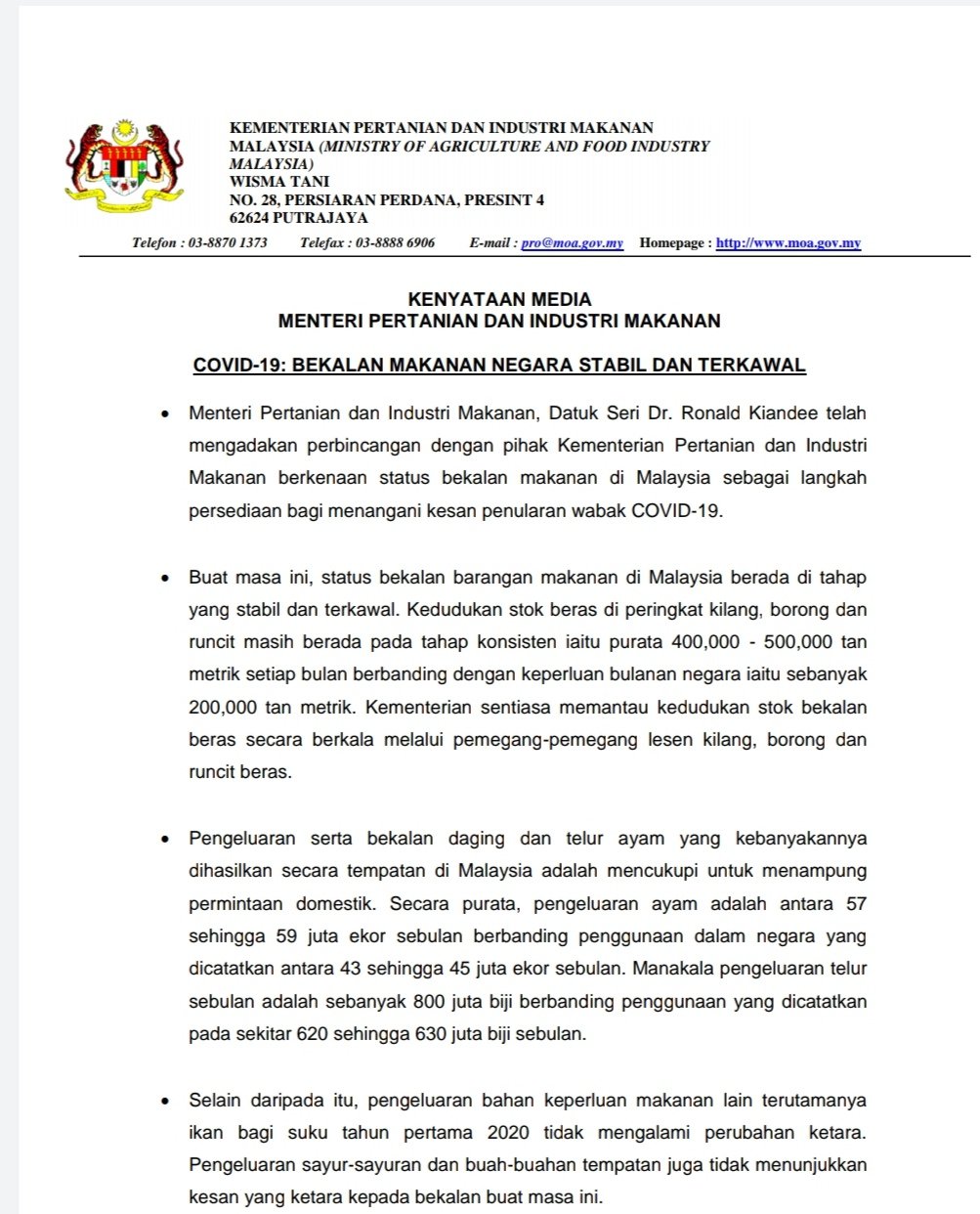 Kementerian pertanian dan industri makanan (pdf).