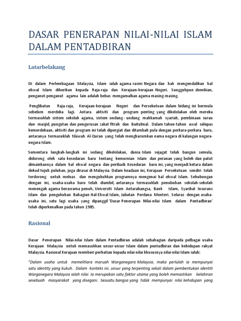 Dasar penerapan nilai nilai islam. Dasar penerapan nilai nilai islam dalam pentadbiran. Mahathir, mengenal pasti pandangan dan pemikiran tun dr. Dasar penerapan nilai nilai islam. 2017 dasar penerapan nilai nilai islam dalam pentadbiran pptx pendahuluan islam ialah agama rasmi seperti yang termaktub dalam perkara 3 fasal 1 course hero