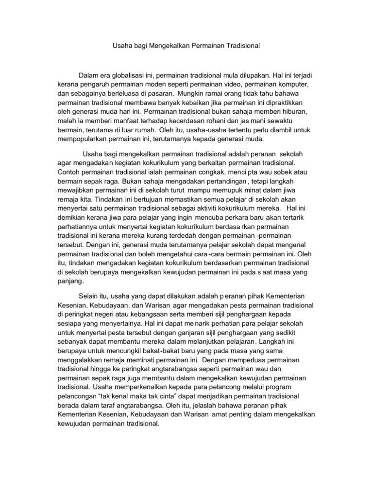 Contoh Pendahuluan Dan Penutup Karangan Yang Menarik from imgv2-2-f.scribdassets.com Dalam usaha menggalak dan mencungkil potensi murid dalam bidang sukan, kpm telah memperkenalkan dasar l murid l sukan untuk dilaksanakan di semua sekolah. Antaranya sukan dapat melahirkan remaja yang sihat, sama ada dari segi fizikal ataupun mental. Huraikan peranan pelbagai pihak untuk memupuk minat bersukan dalam kalangan remaja. Sudah terang lagikan bersuluh, hampir semua golongan remaja terpengaruh dengan internet. Pihak sekolah juga menggalas tanggungjawab untuk memupuk minat membaca dalam kalangan masyarakat malaysia. Huraikan peranan pelbagai pihak untuk memupuk minat bersukan dalam kalangan remaja. Selain itu, penglibatan generasi muda. Memupuk budaya bersukan di kalangan masyarakat.